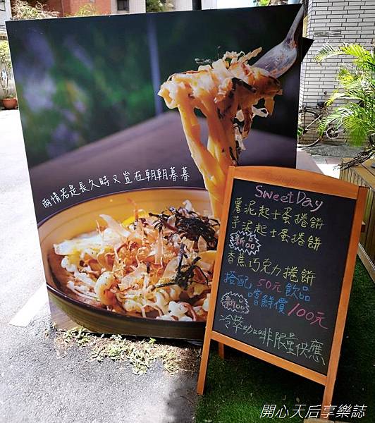『朝朝早午餐』門口的黑板,以不同顏色的粉筆手寫餐飲品名,加上大型的美食看板上寫著宋代秦觀的"兩情若是久長時,又豈在朝朝暮暮",讓我感覺是一家有故事的文青早午餐店