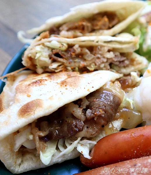 包裹著好幾片油潤牛肉片加上新鮮高麗菜絲,吃起來鹹香多汁,爽口不油膩!
