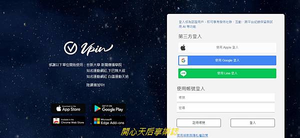 未來登入時,直接使用第三方登入最方便,記得使用與前次相同的社群按鈕登入,不使用下方專為信箱註冊用戶的兩個欄位。