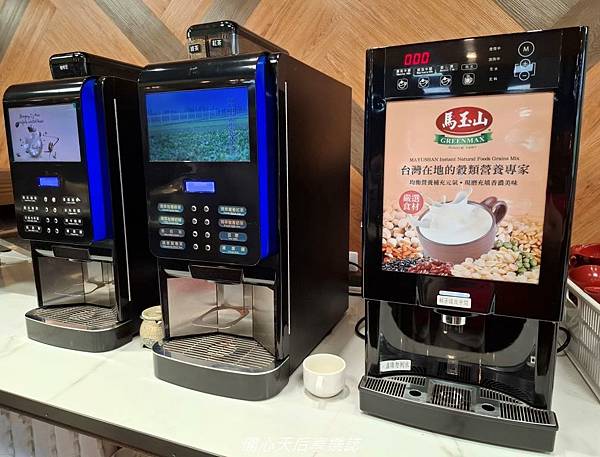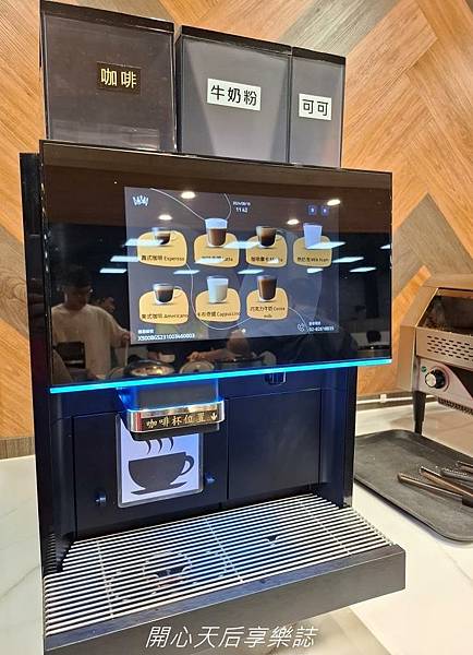 咖啡機提供多種熱飲~拿鐵、美式咖啡、巧克力飲等