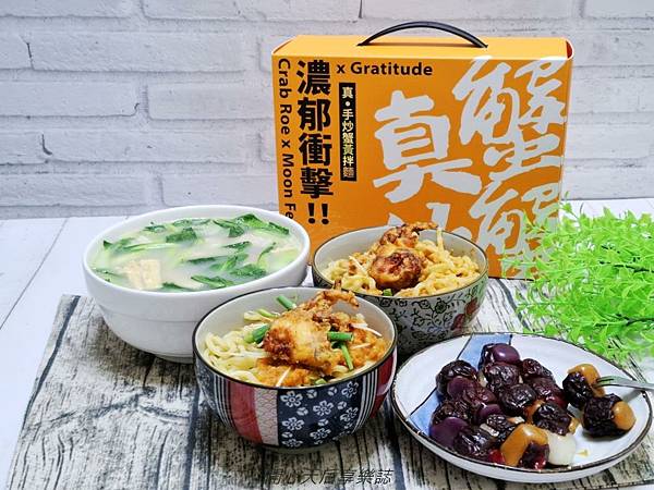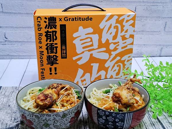 每包含有上海鄉村手炒蟹黃醬x 酥炸軟殼蟹x麵屋武藏勁道寬扁麵各一,恰好是一人獨享份量