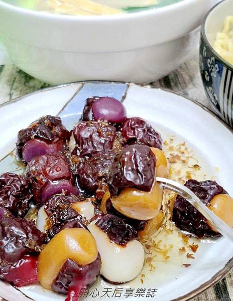 桂香心太軟放入電鍋蒸8分鐘後再淋上桂花釀