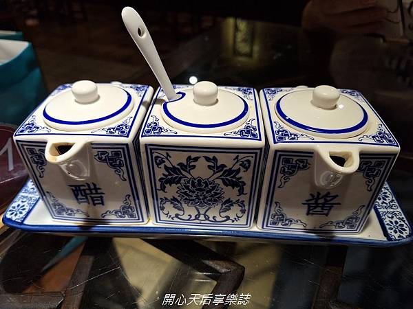 桌上的青花瓷調味醬料罐也是充滿古風,很有懷古氛圍,處處賞心悅目!