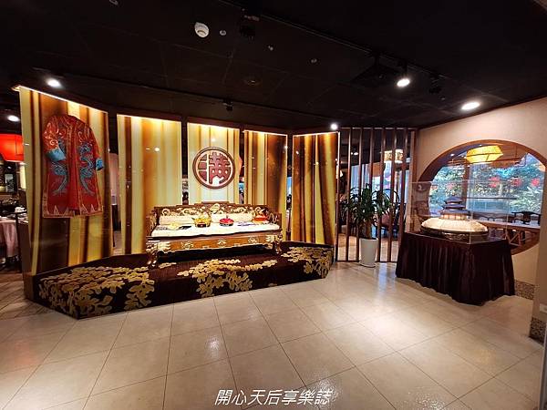 進門後看見中國風古典長椅,椅子上及旁邊擺放變裝服飾,蠻有宮廷感!