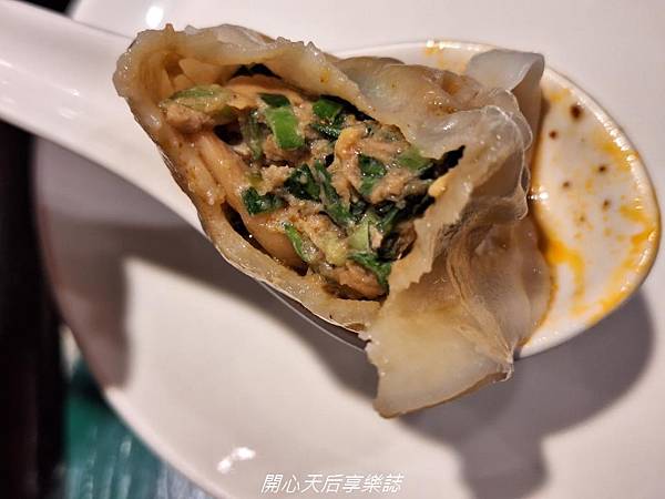 餃子皮薄又Q,含有蝦仁、豬肉、韭菜、雞蛋,餡多汁多,鹹香夠味,1顆$15,值了!