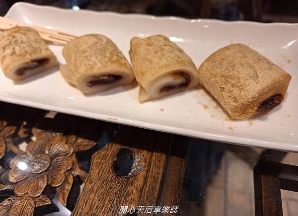 就是灑滿黃豆粉的豆沙麻糬,麻糬很Q彈,不會黏牙
