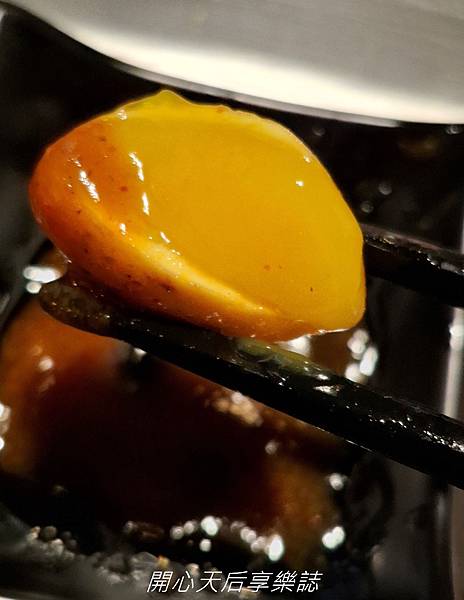 老闆果然功力了得,一口咬下半生熟蛋黃,外表凝固內裏泥膏狀的蛋黃,口感好細膩!