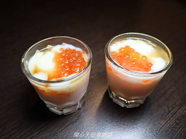 鮭魚卵杯杯$80,老闆提醒我要趕快喝,而且最好一口氣喝完