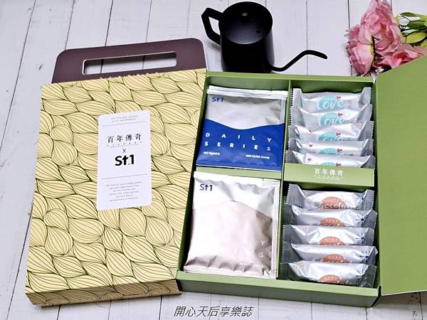 【百年傳奇】今年的新春厚禮系列與台南永康區擁有高人氣自家烘焙咖啡館~【St.1 Cafe' / Work Room 一街咖啡】,聯名推出耳掛咖啡搭配喬朵絲的特規禮盒