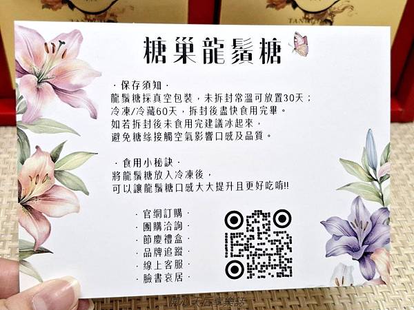 禮盒內附有漂亮花卉卡片,詳細標示商品資訊