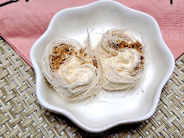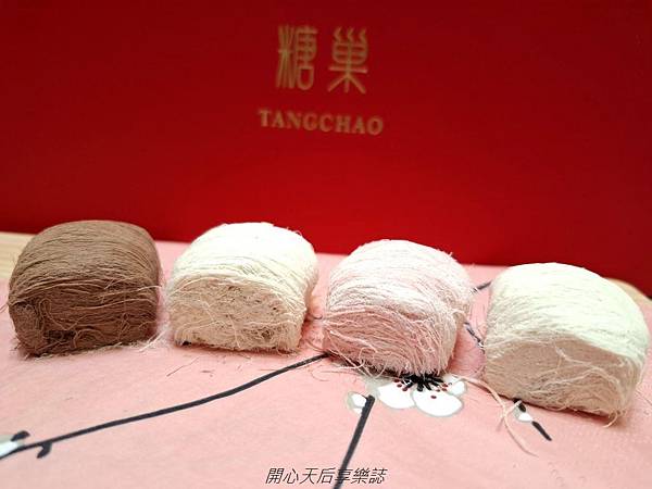 這次挑了4款創新口味的糖巢龍鬚糖:巧克力、蜂蜜五仁龍、草莓、香濃花生鬚糖,全是手工拉絲,糖絲如雪般的細緻,看起來是小巧可愛的一口糖