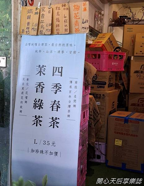 沒裝潢也有點雜亂的店面,唯有這立幅較體面,而且茶飲價錢很吸睛,尤其加珍珠不加價更吸引人!