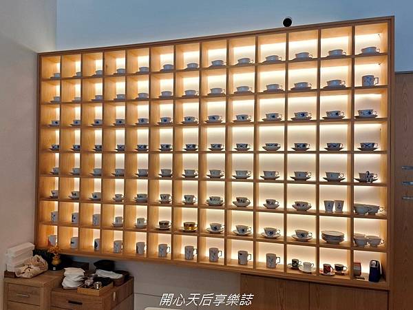 咖啡杯牆及店內所使用的咖啡杯盤,全是有著近300年歷史的德國知名瓷器品牌「Meissen 麥森」