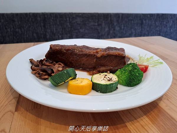 採用法式經典料理手法,選用富有嚼勁的牛肩胛里肌部位,以紅酒與香料慢火燉煮,醬汁濃郁、有著不同層次的鹹香風味,牛排口感柔軟而有嚼勁,越嚼越香!