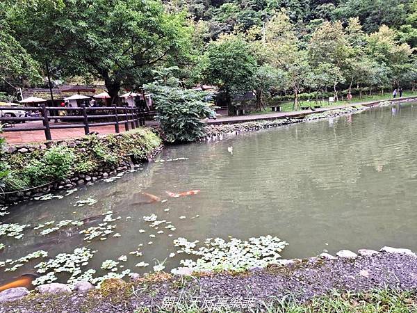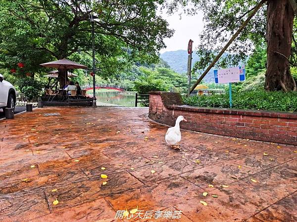 湖中有許多大錦鯉魚、野鴨,大白鵝不怕人的走來走去,遊客可購買魚飼料餵食