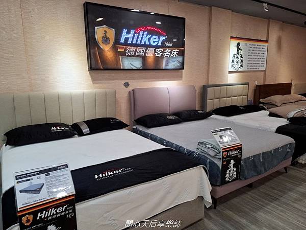 1樓主要是床墊展區,展售自家工廠手工打造的多款平價高品質床墊、『德國優客Hilker』名床系列及天絲棉床包組