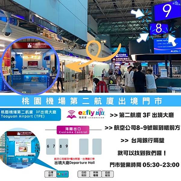按著【飛買家】官網貼心準備的門市路線指示圖,我很快找到【飛買家】在第二航廈的門市,裏面販售很多【飛買家】的旅行商品,包含旅遊上網商品(如上網卡、入境電話卡、WIFI機)、交通票券(機場捷運、高鐵)、旅遊票券(日本周遊券、遊樂園票券)、3C配件等,並將以上商品包裝後推出優惠套裝方案,讓旅客在一個櫃檯可以一次購足所需用的旅行商品,很便利!