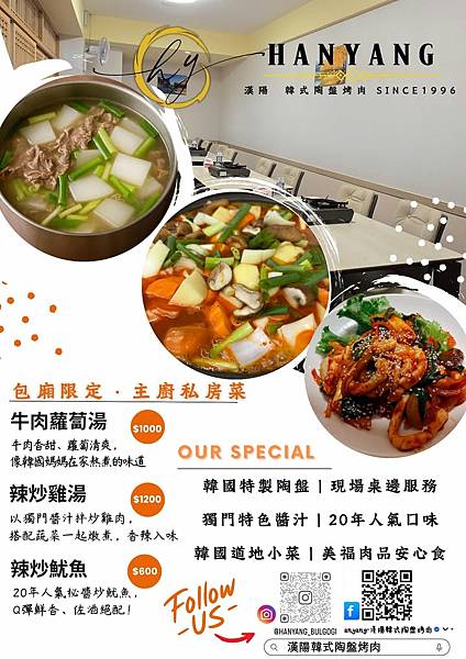 和好友來到東區的【漢陽韓式陶盤烤肉】吃晚餐。漢陽韓式陶盤烤肉是擁有20多年經驗的正宗韓國主廚、道地韓味的韓式料理店,特色是使用韓國專門設計的陶盤,導熱均勻,讓肉品保持軟嫩又有烤肉香氣,並提供美國Prime 杉河農場自然牛和西班牙頂級伊比利豬等優質肉品。
